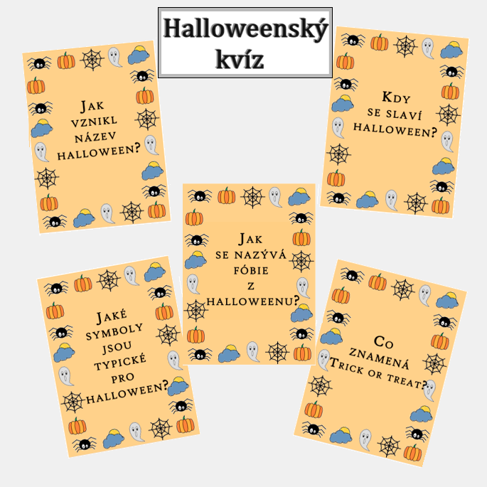 Jedná se o soubor 10 kartiček s otázkami na téma Halloween.