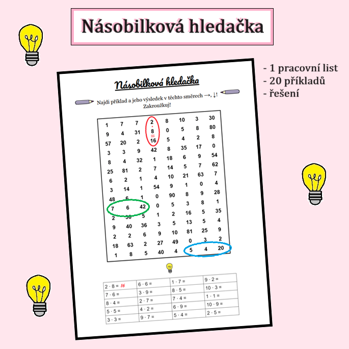 Stáhněte si zdarma naši matematickou hledačku a procvičte si s námi násobilku.