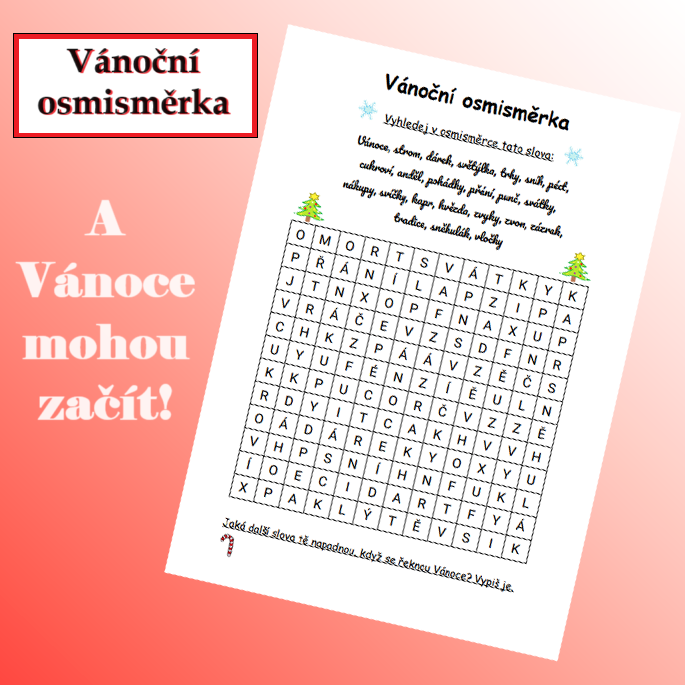 Stáhněte si zdarma vánoční pracovní list s osmisměrkou a nalaďte se s námi na atmosféru Vánoc.