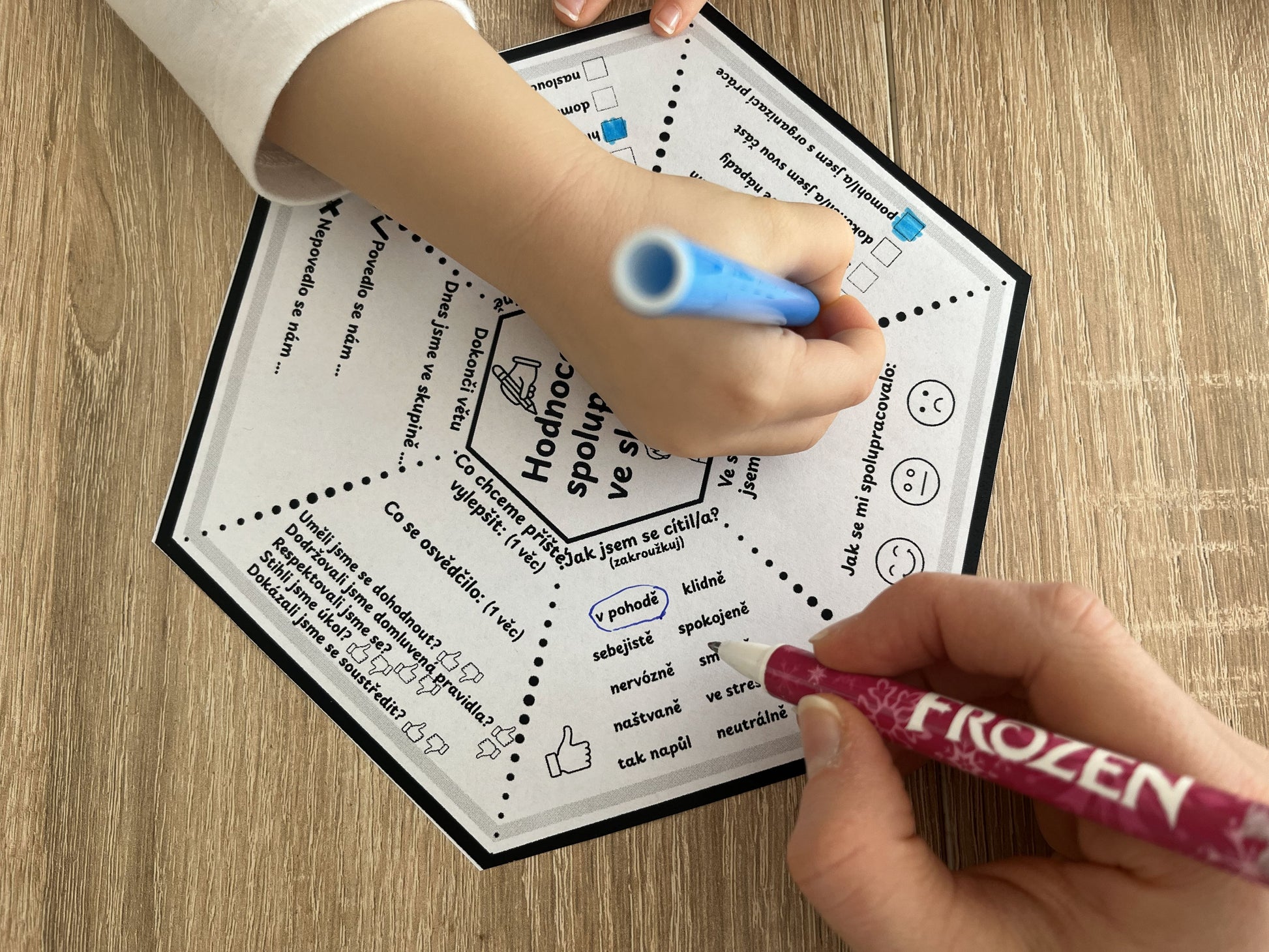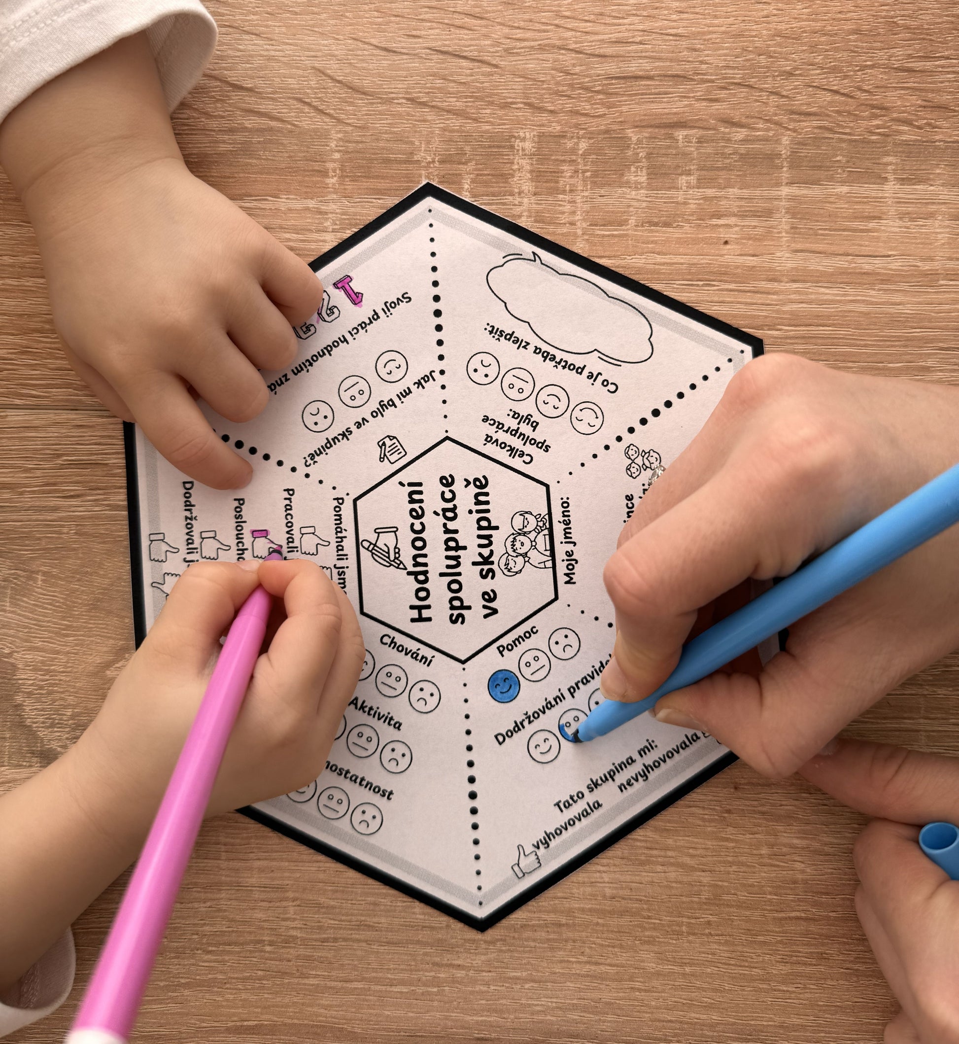 Tento materiál slouží k reflexi a hodnocení spolupráce (v jakémkoliv předmětu) mezi dětmi, ať už v rámci celé skupiny, nebo z pohledu jednotlivce.