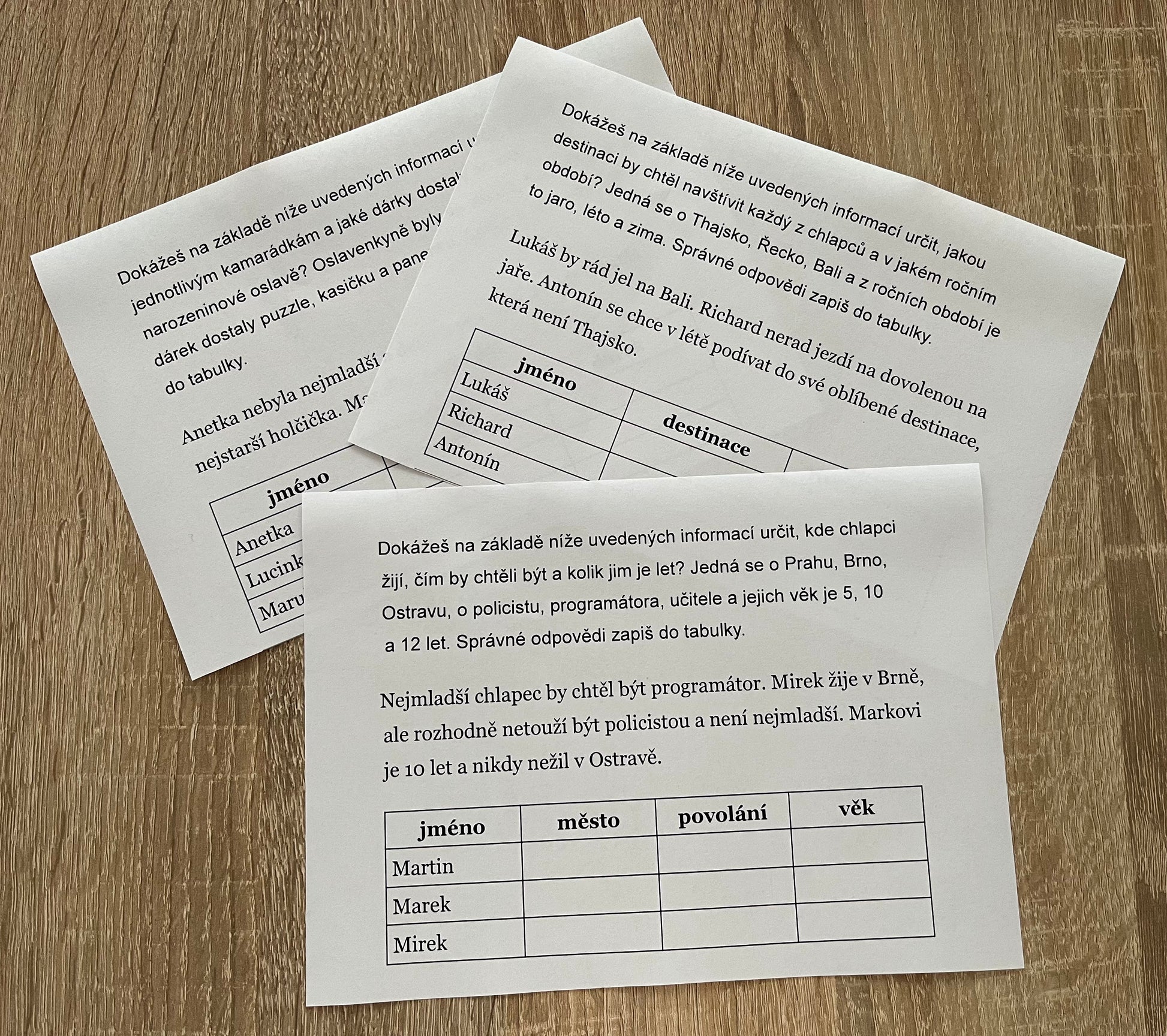logického myšlení a uvažování. Jednotlivá cvičení jsou zaměřená na různá témata.