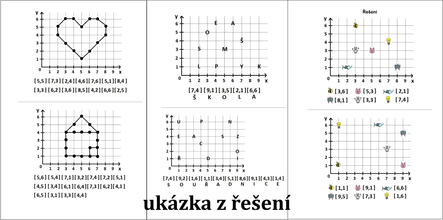 2 cvičení - žáci pomocí souřadnic hledají a zaznačují body (kolečka) → vznikne obrázek)