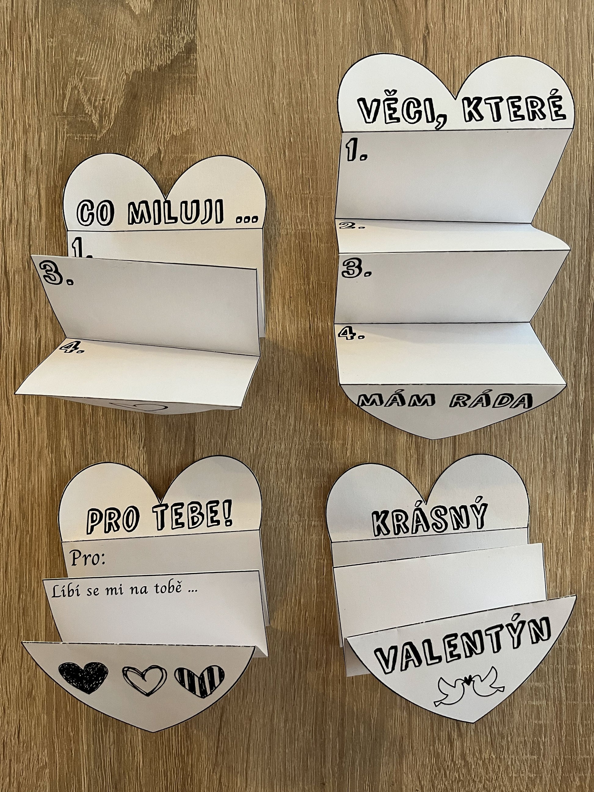 - 11 předloh srdíčka určeného ke složení (černobílá varianta)