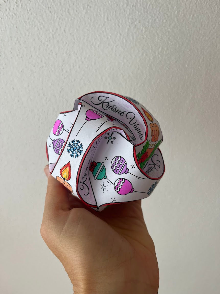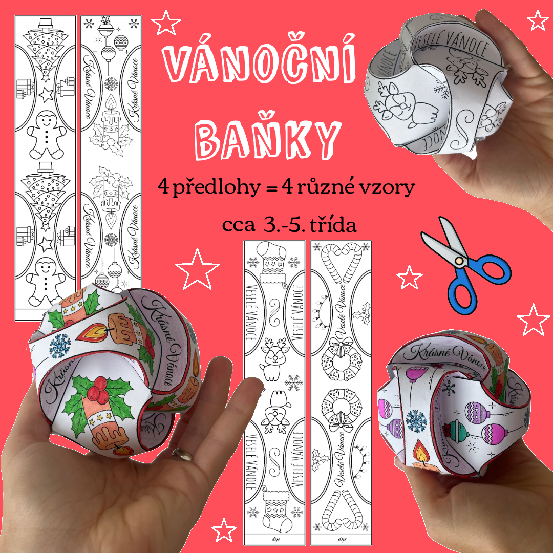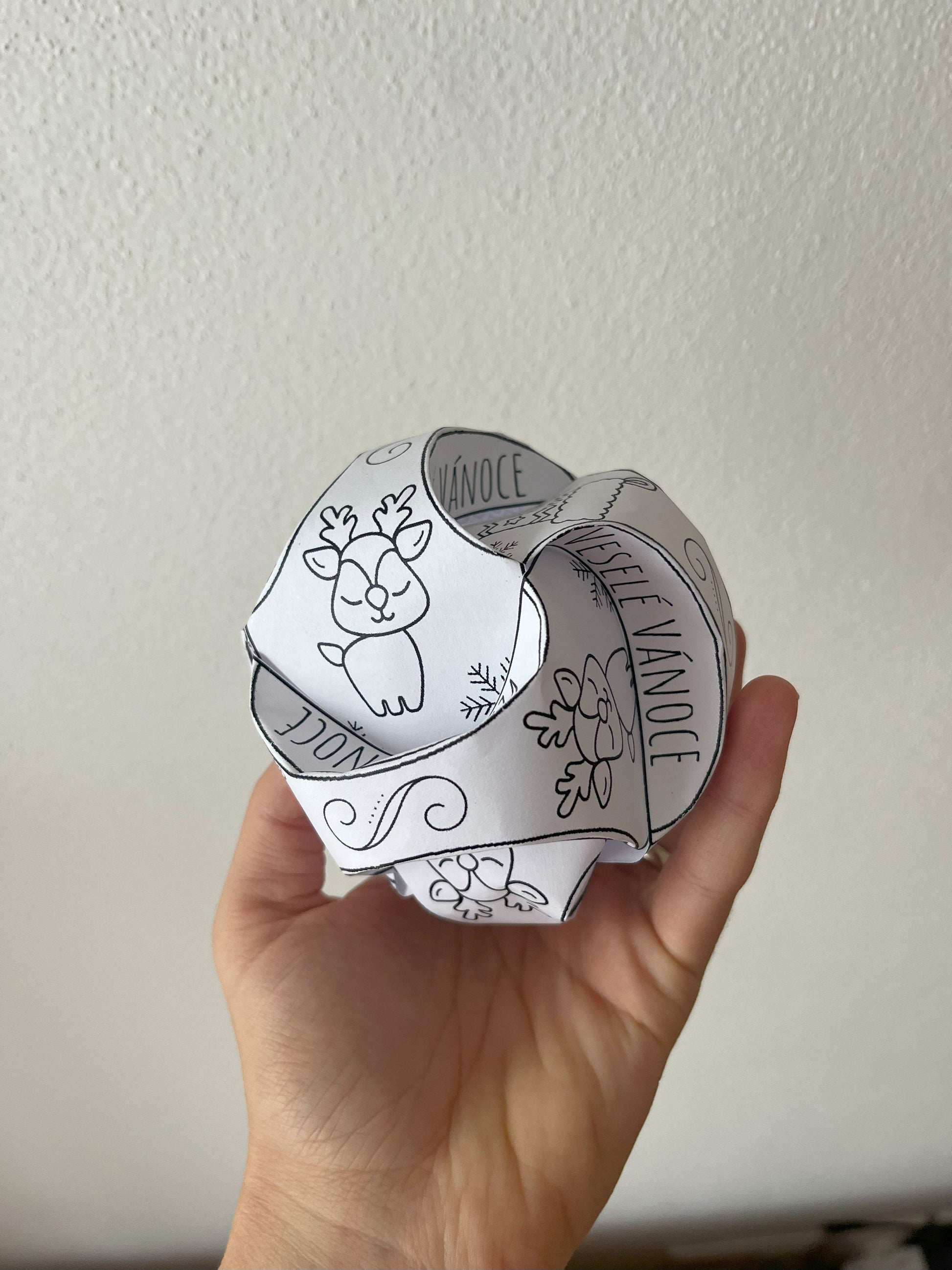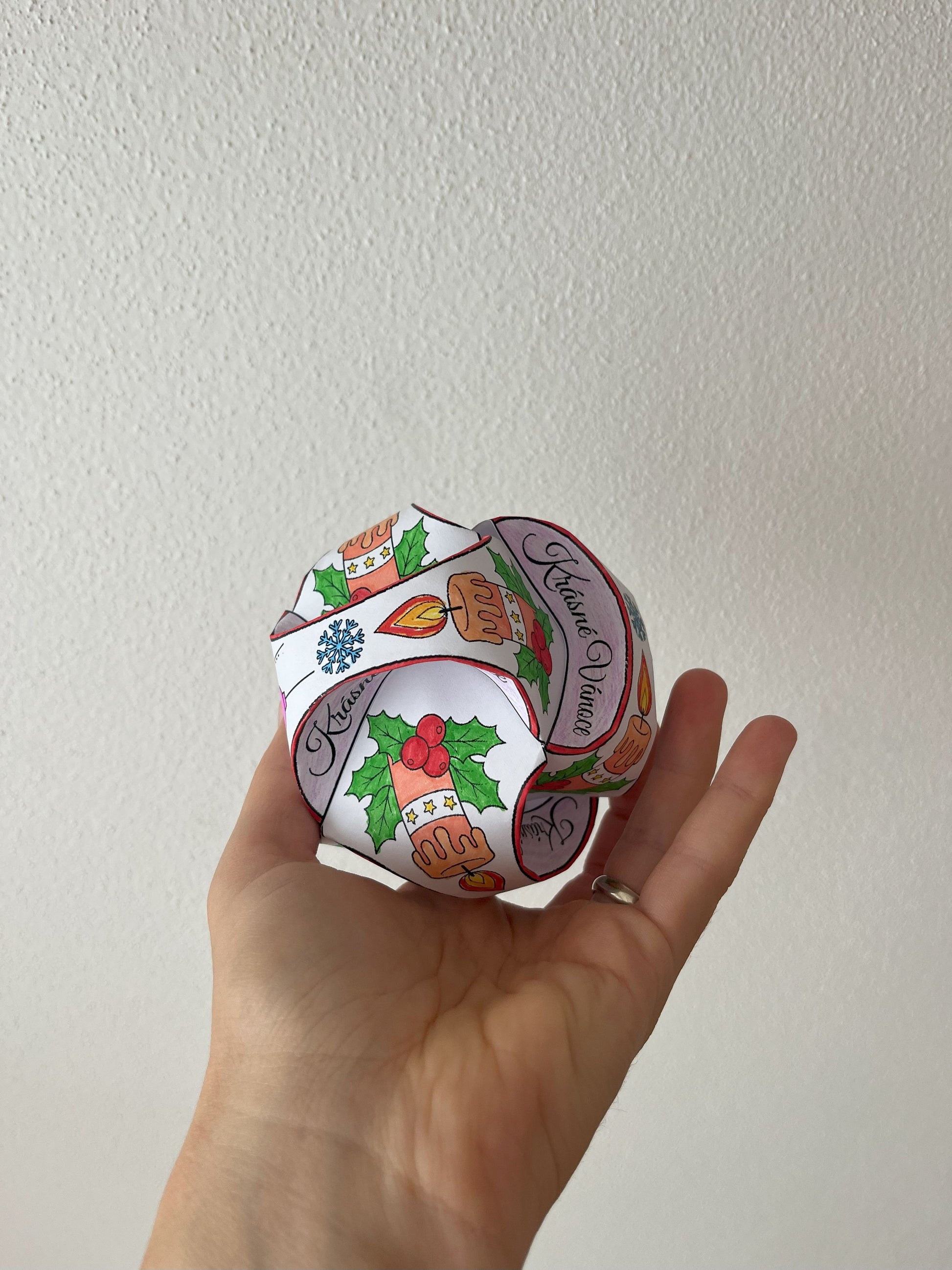 vánoční kouli z papíru. Na výběr je ze 4 předloh. Aktivitka v sobě spojuje kreativitu, jemnou motoriku a prostorovou představivost. Tato aktivita je ideální pro vánoční dílničky,